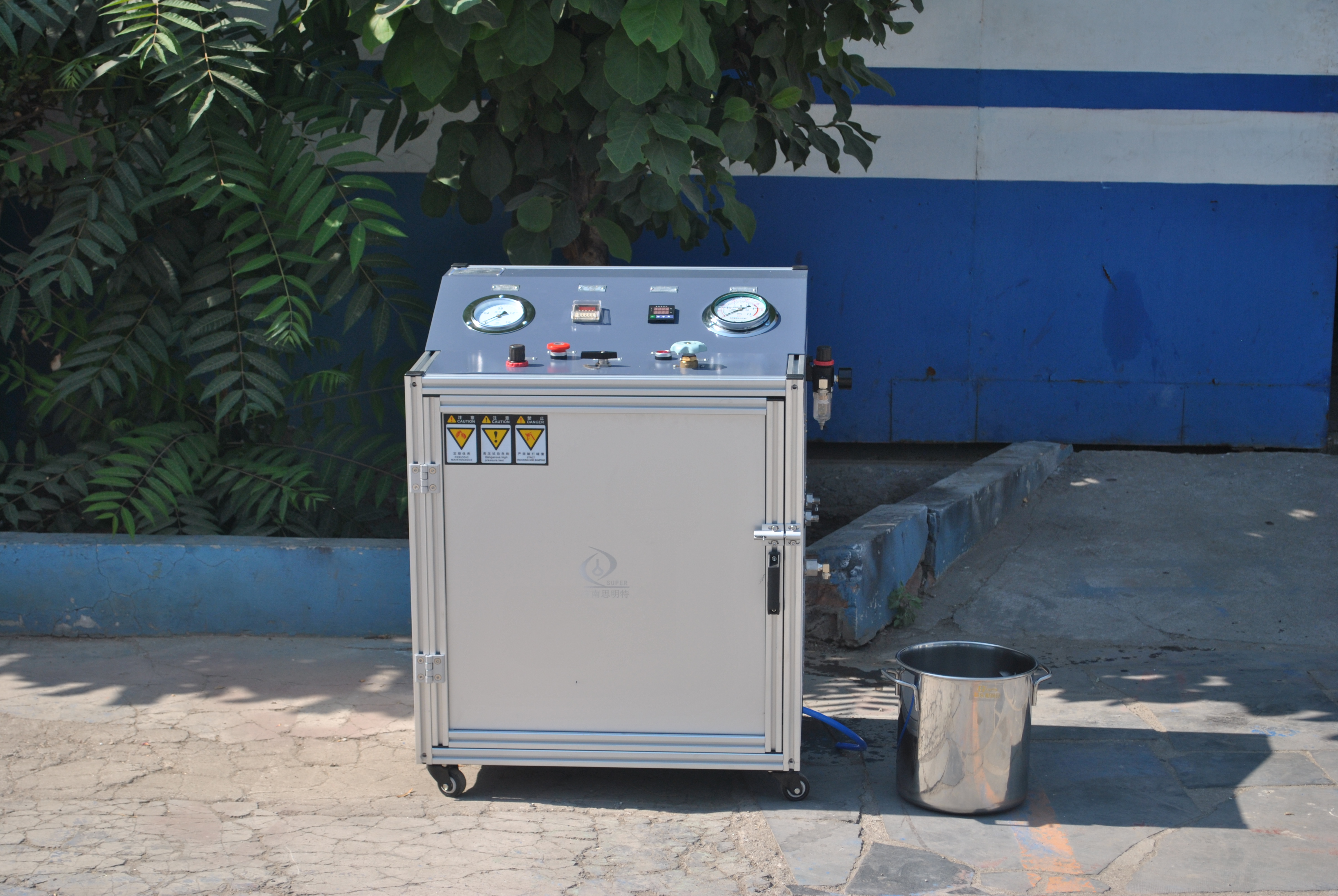 農(nóng)藥管水壓爆破試驗機(噴藥膠管水壓試驗機)壓力范圍20Mpa,壓力顯示單位0.01Mpa,介質(zhì)為清水,控制方式為計算機控制的方式,內(nèi)置思明特柱塞泵,實現(xiàn)對介質(zhì)的高壓增壓的效果,配有防護裝置,在測試時能夠?qū)y試狀態(tài)機進行防護,針對于農(nóng)業(yè)機車農(nóng)藥噴淋管、噴藥管、噴藥罐、噴藥槍頭、噴藥管件等農(nóng)業(yè)農(nóng)機管件的壓力檢測項目。